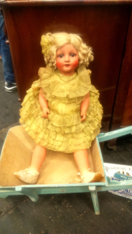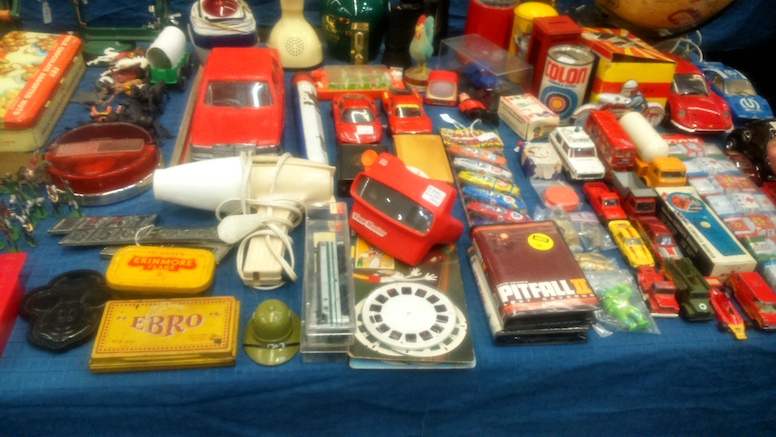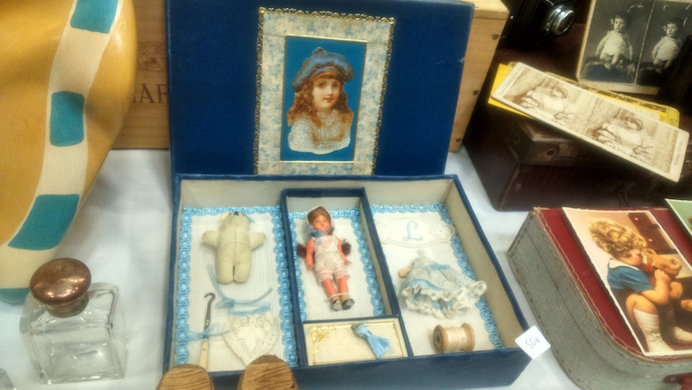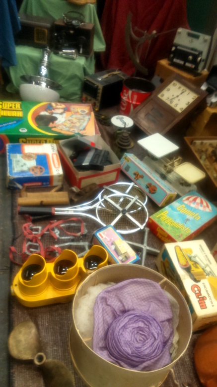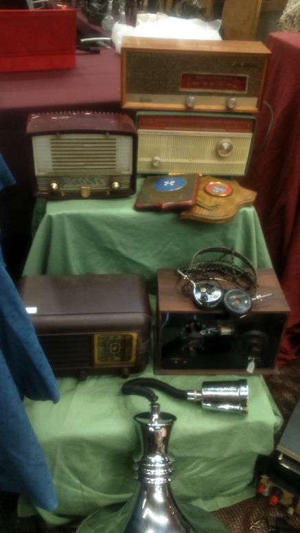 Mas radios antiguas, un osito con maletas y alguna muñeca.