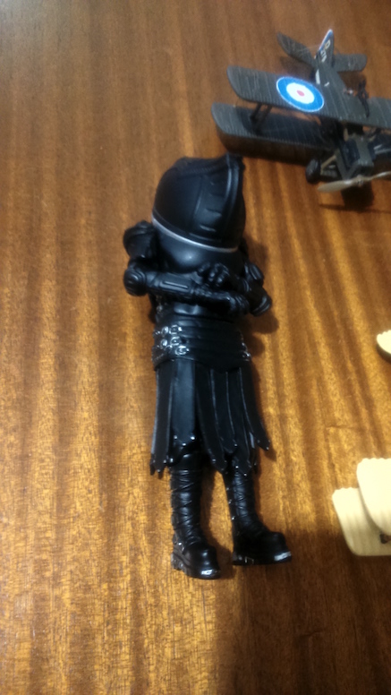 Aqui se ve la figura más en detalle es un Judoon. Los Judoon son unos personajes que aparecen en Dr. Who. Tienen cabeza de rinoceronte y llevan estas armaduras, lo había sin casco y con casco pero el prefirió el que tiene casco.