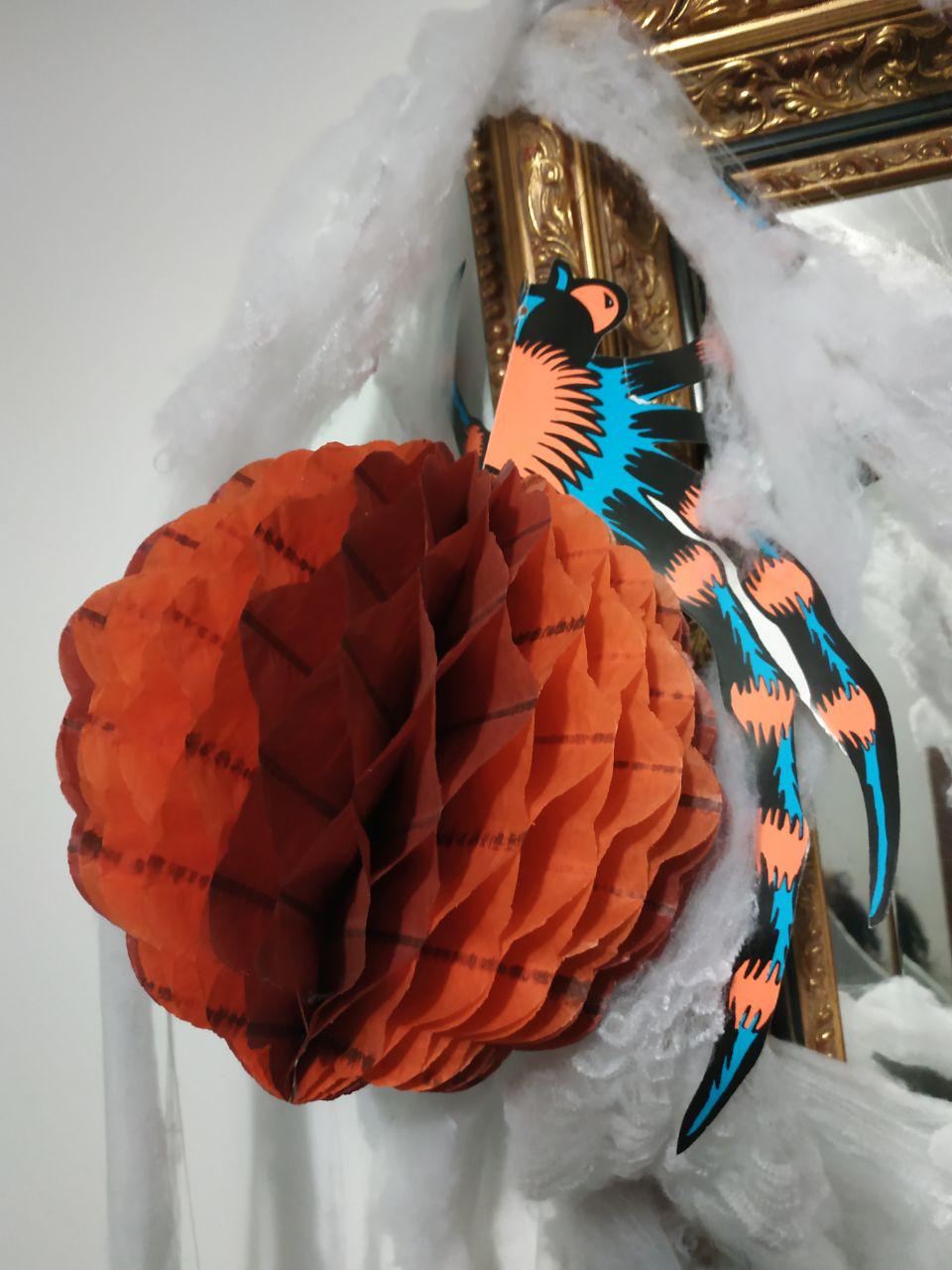No pueden faltar, las telarañas, a mi me encantan estas con arañitas incluidas. Ni tampoco estás dos guirnaldas de papel.